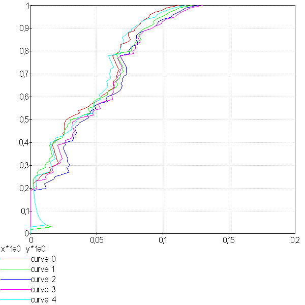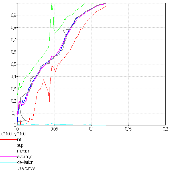 La première image montre 5 courbes taux de lecture / taux de substitutions. Les courbes ne sont pas monotones et montre qu’il existe parfois plusieurs taux de lecture pour un même taux de substitution. Comme le calcul des intervalles de confiance fait intervenir une interpolation linéaire, lorsque les courbes sont trop cahotiques, le calcul retourne des valeurs fausses.