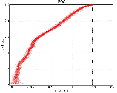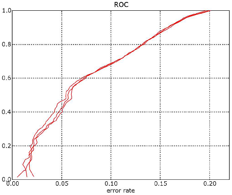 Une seule courbe ROC ne permet d’obtenir qu’un seul taux. On cherche ici à construire plusieurs courbes ROC à partir de la même expérience de façon à obtenir plusieurs taux de reconnaissance pour le même taux d’erreur. De cette manière, il sera possible de déterminer un intervalle de confiance. On s’inspire pour cela des méthodes de bootstrap.