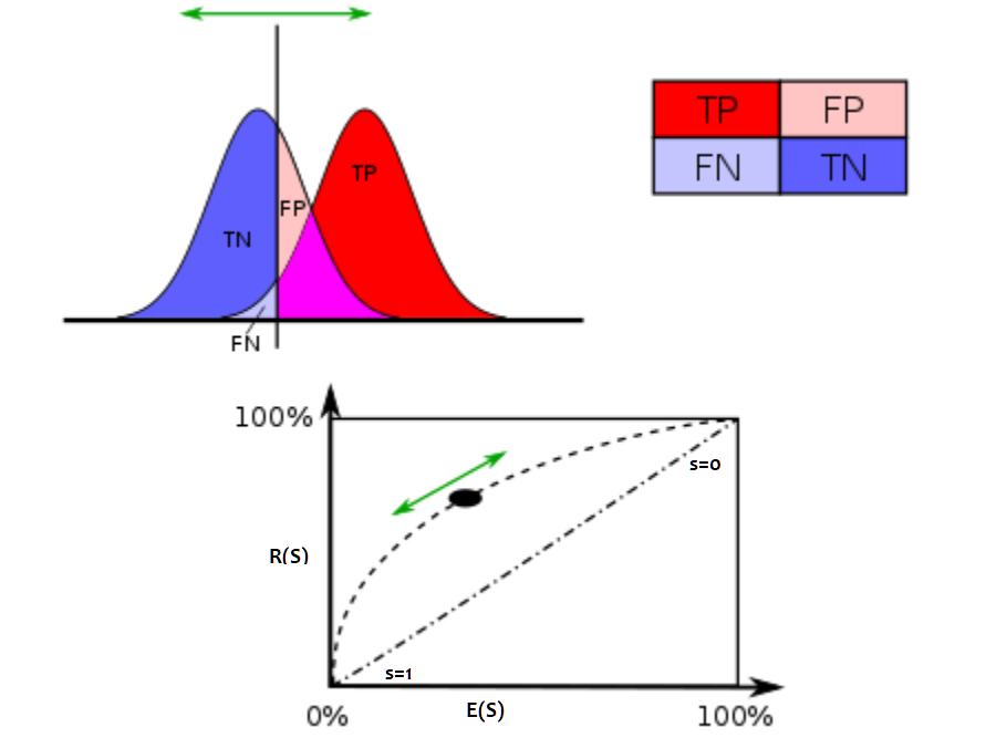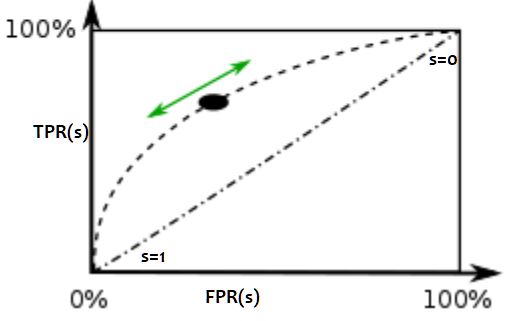 x = FPR(s), y = TPR(s). (FPR = False Positive Rate, TPR = True Positive Rate)