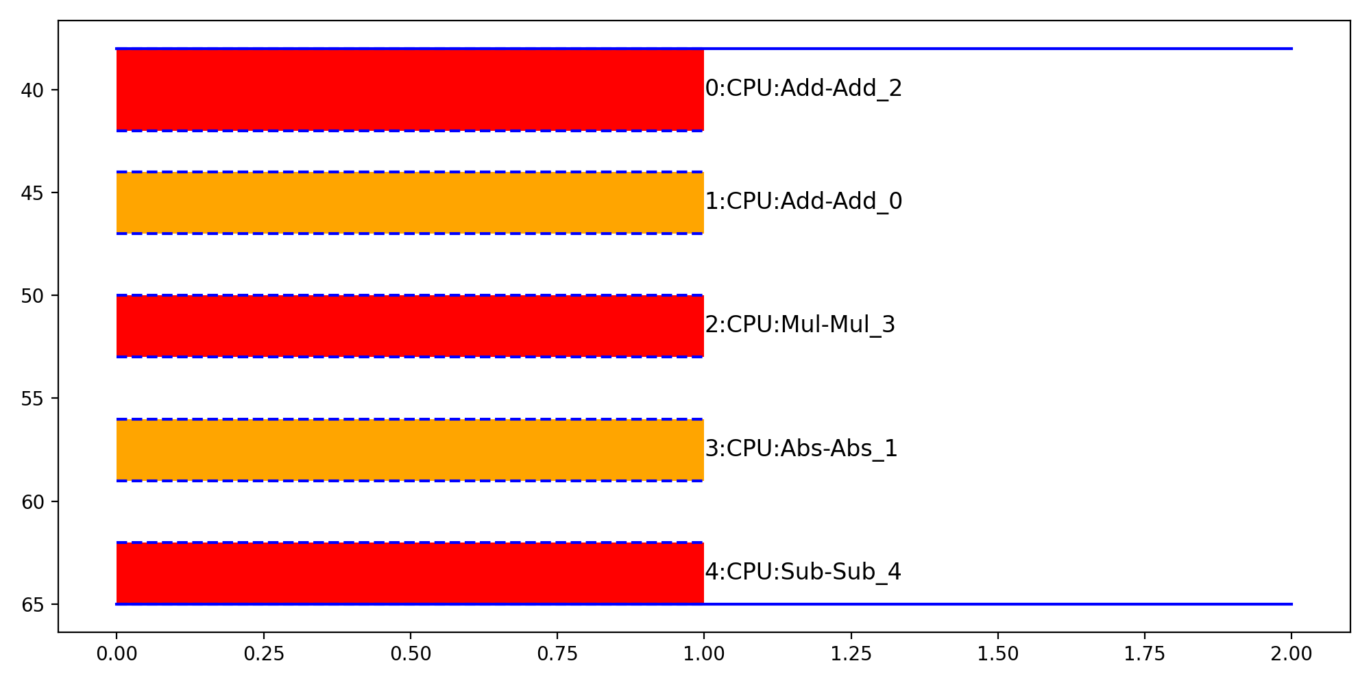 import numpy as np from onnx import TensorProto import onnx.helper as oh from onnx.checker import check_model from onnx.numpy_helper import from_array import matplotlib.pyplot as plt from onnxruntime import InferenceSession, SessionOptions from onnx_diagnostic.helpers.rt_helper import ( js_profile_to_dataframe, plot_ort_profile_timeline, ) def get_model(): model_def0 = oh.make_model( oh.make_graph( [ oh.make_node("Add", ["X", "init1"], ["X1"]), oh.make_node("Abs", ["X"], ["X2"]), oh.make_node("Add", ["X", "init3"], ["inter"]), oh.make_node("Mul", ["X1", "inter"], ["Xm"]), oh.make_node("Sub", ["X2", "Xm"], ["final"]), ], "test", [oh.make_tensor_value_info("X", TensorProto.FLOAT, [None])], [oh.make_tensor_value_info("final", TensorProto.FLOAT, [None])], [ from_array(np.array([1], dtype=np.float32), name="init1"), from_array(np.array([3], dtype=np.float32), name="init3"), ], ), opset_imports=[oh.make_opsetid("", 18)], ir_version=9, ) check_model(model_def0) return model_def0 sess_options = SessionOptions() sess_options.enable_profiling = True sess = InferenceSession( get_model().SerializeToString(), sess_options, providers=["CPUExecutionProvider"] ) for _ in range(11): sess.run(None, dict(X=np.arange(10).astype(np.float32))) prof = sess.end_profiling() df = js_profile_to_dataframe(prof, first_it_out=True) print(df.head()) fig, ax = plt.subplots(1, 1, figsize=(10, 5)) plot_ort_profile_timeline(df, ax, title="test_timeline", quantile=0.5) fig.tight_layout()