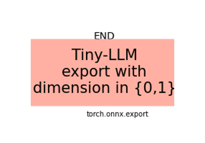 doc.plot_legend("Tiny-LLM\nexport with\ndimension in {0,1}", "to_onnx", "tomato")